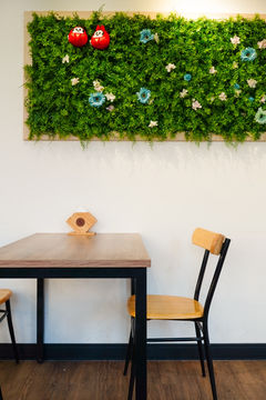 店內有許多饒有玩味的布置與巧思,綠植牆和招財貓筷架,讓空氣裡多了一點「俏皮」的自在氣息。